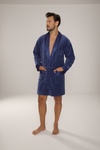 BAWEŁNIANY, elegancki szlafrok męski De Lafense - 866 z satynowym wykończeniem