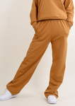 Komplet sportowy bluza z kapturem i "kangurką" oraz szerokie spodnie Dk-k-b8 - brąz bawełna - Dkaren