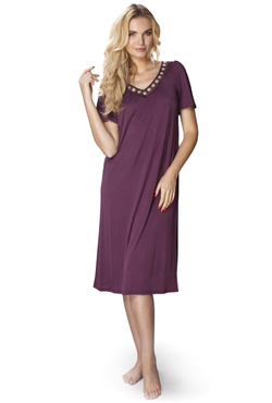 Koszula nocna damska Lilia z haftowaną aplikacją 4111 Bakłażanowy - Mewa