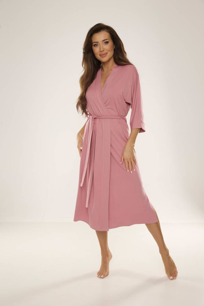 Szlafrok damski De Lafense Visa 942 to damski szlafroczek wykonany z wysokiej jakości wiskozy 94% z dodatkiem elastanu. Długii, wiązany w pasie, rękaw 3/4. Tworzy idealny komplet z koszulką lub piżamą z kolekcji De Lafense Visa. W naszej ofercie posiadamy bogatą paletę kolorystyczną .Oto idealny wybór dla każdej kobiety ceniącej sobie styl i wygodę w domowej garderobie. Szlafrok damski De Lafense Visa 942 to doskonałe połączenie elegancji, komfortu i funkcjonalności. Wykonany z wysokiej jakości wiskozy, ten długi szlafrok charakteryzuje się niezwykłą miękkością oraz przewiewnością, dzięki czemu idealnie sprawdzi się podczas chłodniejszych wieczorów. Jego różowy odcień, w subtelnym pudrowym różu, dodaje mu lekkości i kobiecości, sprawiając, że każda chwila w nim spędzona będzie niezapomniana.