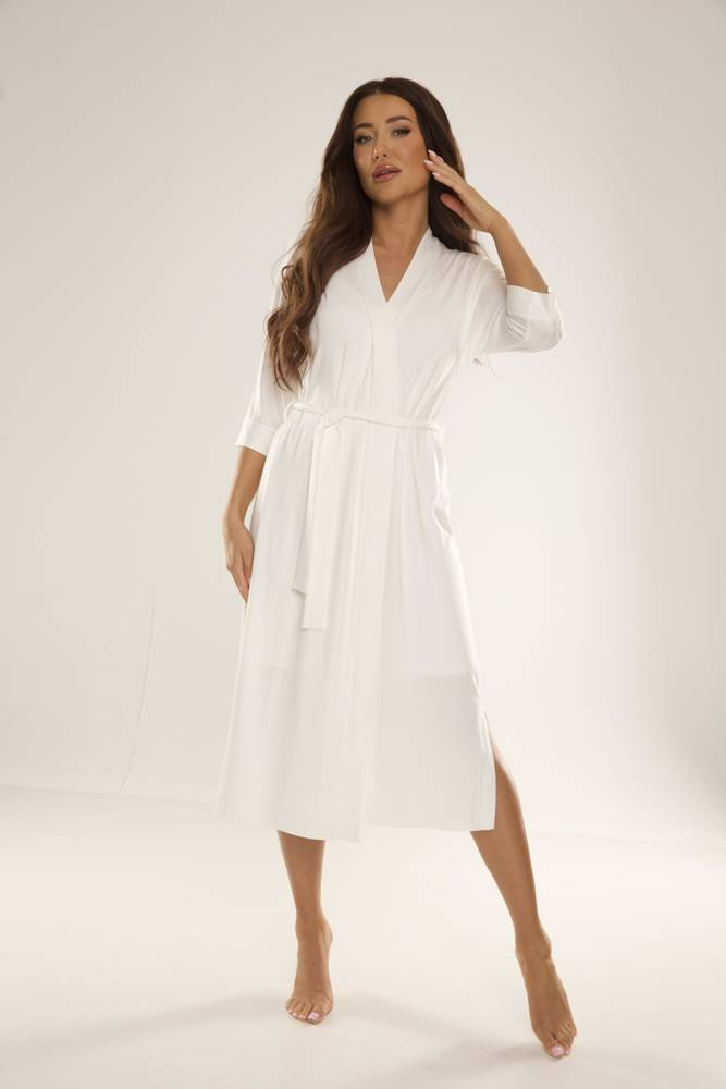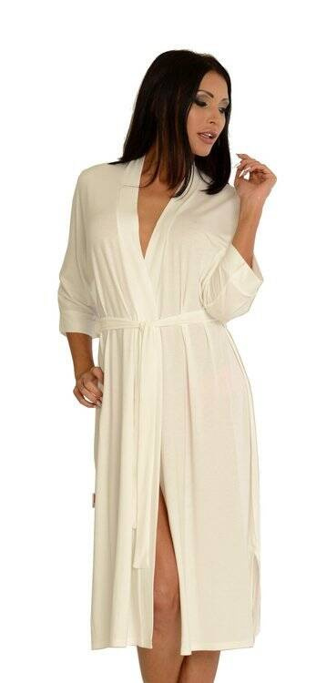 Szlafrok damski De Lafense Visa 942 to damski szlafroczek wykonany z wysokiej jakości wiskozy 94% z dodatkiem elastanu. Długii, wiązany w pasie, rękaw 3/4. Tworzy idealny komplet z koszulką lub piżamą z kolekcji De Lafense Visa. W naszej ofercie posiadamy bogatą paletę kolorystyczną .Przedstawiamy szlafrok damski De Lafense Visa 942, model, który łączy elegancję z komfortem. Wykonany z wysokiej jakości materiałów, ten długi szlafrok zapewni Ci przyjemność noszenia i doskonałe samopoczucie zarówno podczas wieczornego relaksu, jak i porannych przygotowań do dnia. Odcień ecru w połączeniu z beżowymi akcentami sprawia, że jest on idealnym wyborem dla kobiet ceniących sobie subtelność i styl. Dzięki właściwościom materiału, szlafrok jest cienki i lekki, zapewniając jednocześnie odpowiedni komfort cieplny.