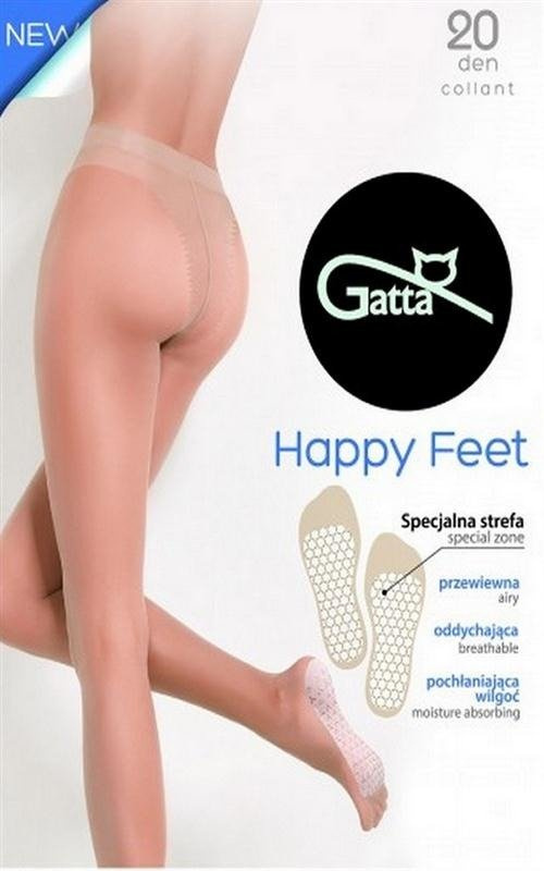 - Przewiewne, cienkie rajstopy Gatta Happy Feet ze specjalną strefą na spodzie stopy: przewiewną, oddychającą, pochłaniającą wilgoć. Model wykończony elastycznym ściągaczem. Brak zaznaczonej części majteczkowej i palców.