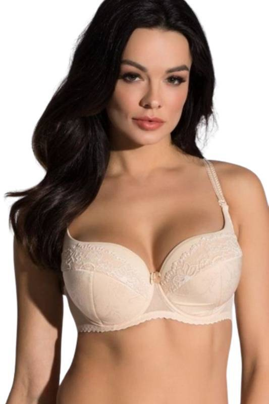 Biustonosz damski Biggi - IVA Klasyczny, usztywniany biustonosz o pełnym kroju. Całość zdobiona haftem.Wykonany z delikantego haftowanego tiulu w deseniu kwiatowym, posiada regulowane ramiączka co zapewnia indywidualne dopasowanie. Idealnie zbiera i podtrzymuje biust.Szczegółowe dane