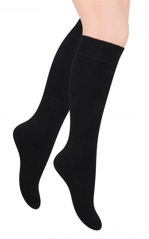 - Bawełniane podkolanówki damskie Steven 072 z dodatkiem włókien elastycznych, dla lepszego przylegania na nodze. Gładkie, jednolite, z nieuciskającym ściągaczem. Skład uzależniony od koloru: 65-70% bawełna, 26-27% poliamid, 4% polipropylen, 3-5% elastan