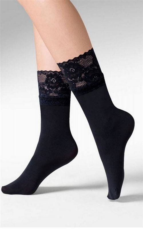 - Koronkowe skarpetki Gabriella - Nina. Eleganckie, kryjące skarpetki bez zaznaczonej części palcowej. Górna część wykończona szerokim pasem koronki na silikonie, aby skarpetki się nie zsuwały i pięknie wyglądały na nodze.