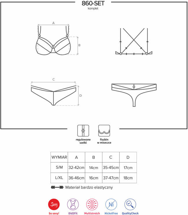 - elastyczne paseczki zdobią obie części kompletu – wspaniale podkreślone kształty!