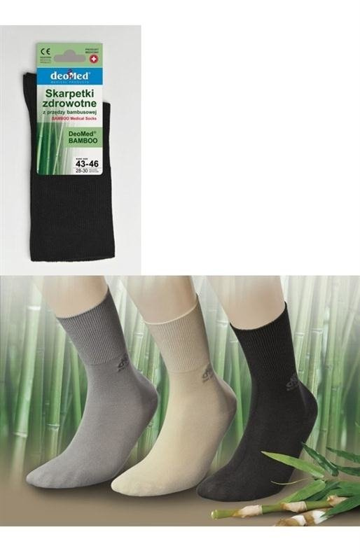 - Medyczne, bezuciskowe skarpetki DeoMed z przędzy bambusowej. Mają atest medyczny , dają komfort nawet opuchniętym stopom. Przędza bambusowa odprowadza wilgoć, specjalna apretura ma właściwości bakteriobójcze.