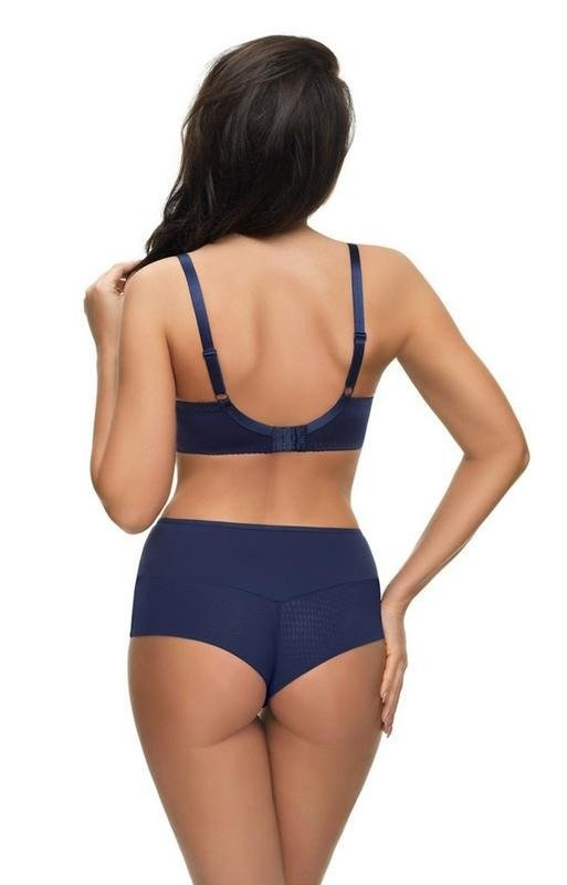 Granatowy kolor tej bielizny nadaje jej klasyczny, a jednocześnie zmysłowy charakter. Koronkowe zdobienia stanowią subtelny, ale efektowny akcent, który przyciąga wzrok i dodaje całości wyjątkowego uroku. Te majtki są doskonałym połączeniem prostoty i finezji, idealnie sprawdzą się zarówno w codziennym użytku, jak i przy bardziej wyjątkowych okazjach.