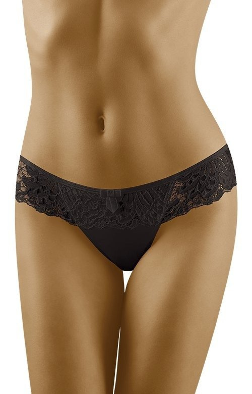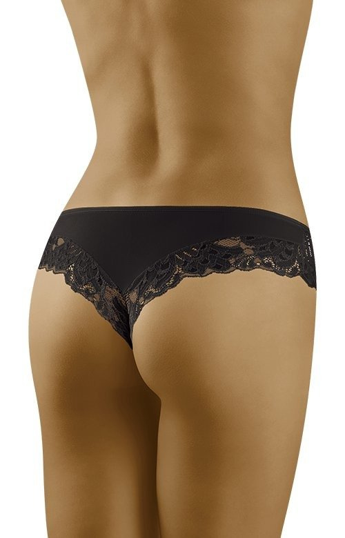 Karioka to urokliwe stringo-szorty. Przód majtek zdobi ekskluzywny pas koronki, który biegnie do tyłu aż do pośladków. Dzięki takiemu rozwiązaniu pośladki i biodra są kusząco podkreślone. Na środku majtek umieszczono śliczną kokardkę. Model Karioka występuje aż w czterech kolorach: białym, czarnym, beżowym i uwodzicielsko czerwonym. Skład materiału: MICROFIBRA (Poliamid - 83%, Elastan - 17%).