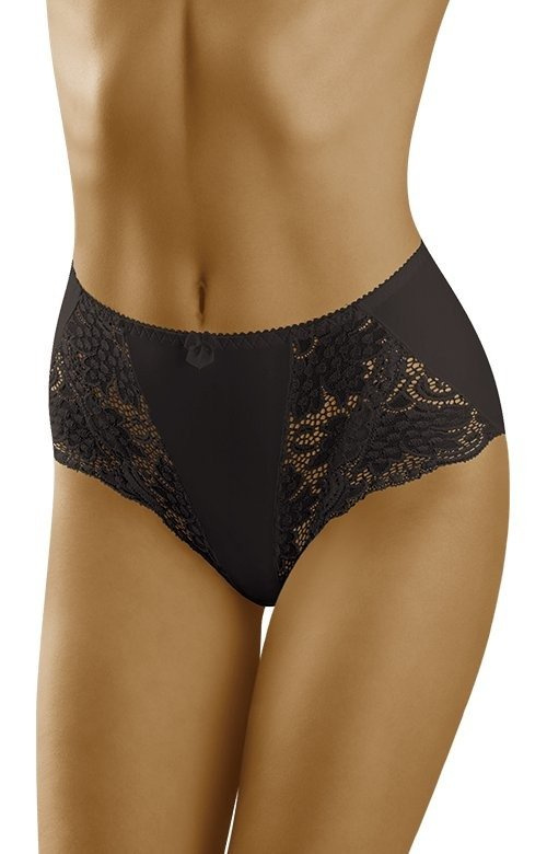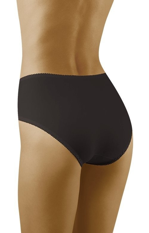 Figi Wolbar Nela II to model, który jest mocno zabudowany. Przód fig z przodu zdobią wstawki koronkowe z motywem roślinnym a tył jest gładki. W modelu Nela II do wyboru są dwa kolory: biały i czarny. Figi występują w rozmiarach od S do XL.