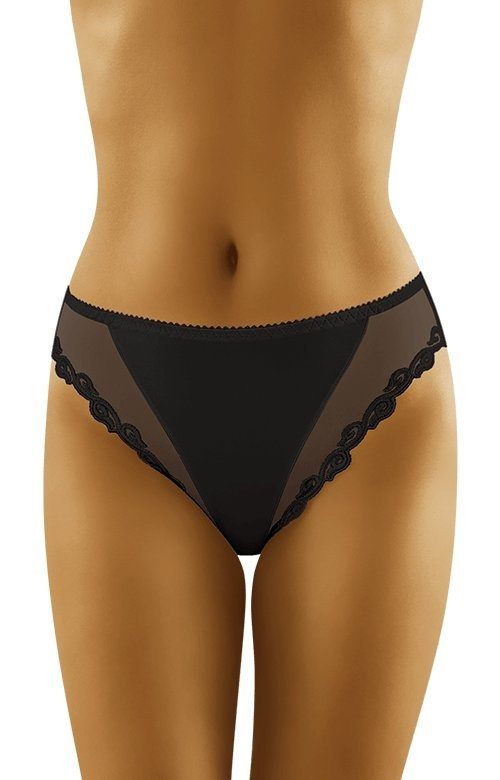 - Figi damskie Wolbar model Poly II. Figi uszyte z przyjemnej w dotyku microfibry. Figi idealnie przylegają do ciała. Tył majtek jest gładki a przód przy nogawkach zdobiony jest haftem. Model występuje w dwóch kolorach: białym i czarnym w rozmiarach od S do