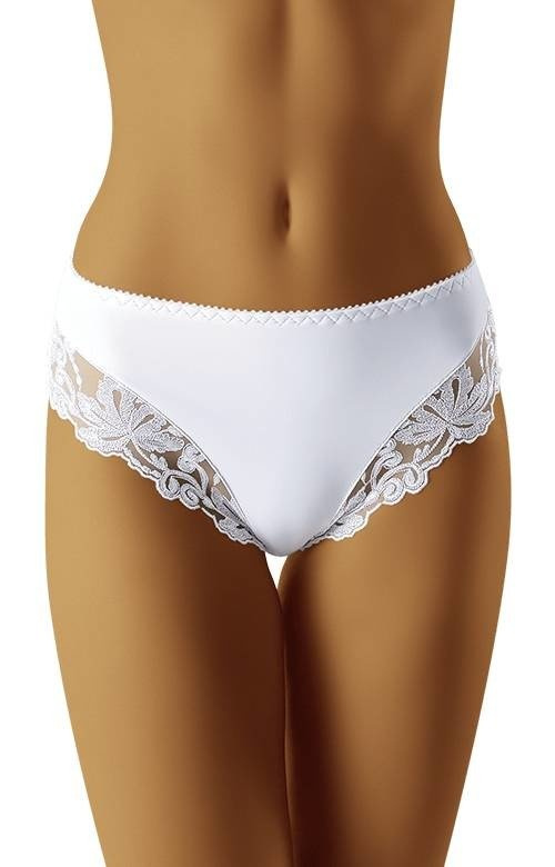 Figi damskie Wolbar Lara to zabudowane figi o klasycznej linii. Figi uszyte są z microfibry, dzięki czemu idealnie dopasowują się do sylwetki. Przód majtek przy nogawkach zdobią tiulowe wstawki z haftem o motywie roślinnym. Tył w modelu Lara jest zabudowany i gładki. Majteczki dostępne w kolorze białym i czarnym w rozmiarach od M do XXL. Skład: MICROFIBRA - Poliamid 83%, Elastan (Poliuretan) 17%.