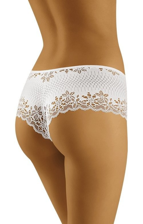 Szorty damskie Wolbar Pari to piękne szorty w całości szyte z elastycznej koronki. Model pięknie układa się na pośladkach, przez co skupia na nich uwagę. W kroku modelu Pari wszyty jest klin, który zwiększa komfort użytkowania majteczek. Model do kupienia w kolorze białym oraz czarnym w rozmiarach od S do L.