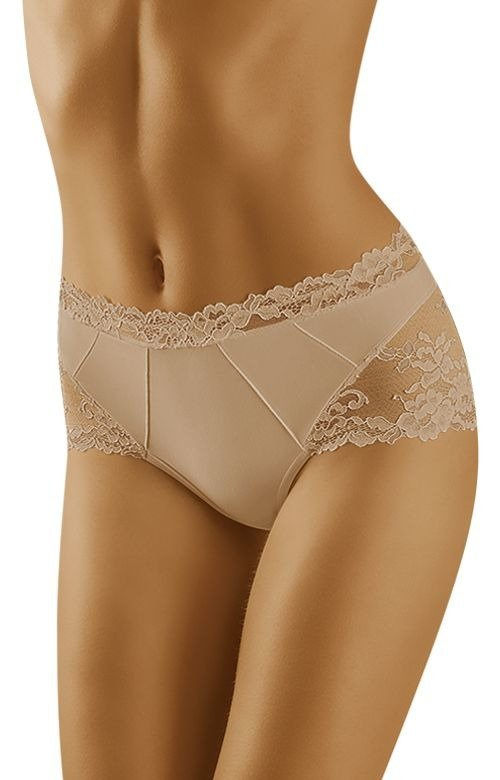 - Figi damskie Wolbar model Luxa. Figi uszyte są z mikrofibry. Przód fig ma pionowe cięcia, które optycznie wyszczuplają sylwetkę. Na biodrach z przodu figi zdobi piękna koronka, która przechodzi na tył eksponując i uwydatniając przepięknie pośladki. Nad po