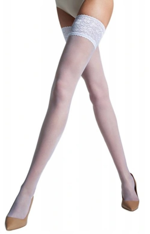 - Typ: pończochy samonośne – atrakcyjne i praktyczne, umożliwiające łatwe zakładanie oraz idealne trzymanie na nodze bez potrzeby dodatkowych akcesoriów.