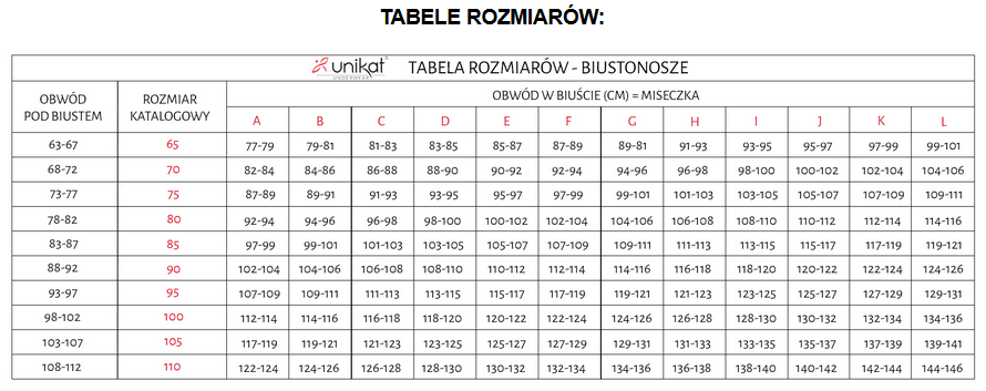Rozmiar | Obwód pod biustem [cm] | Obwód w biuście [cm] |
