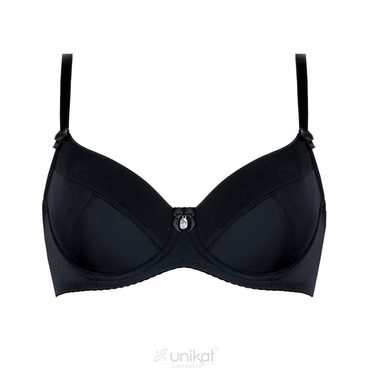 Elegancki model biustonosza z usztywnianymi miseczkami perfekcyjnie podtrzymującymi biust. Biustonosz wykonany jest z przyjemnego w dotyku materiału sprawiającego iż idealnie dopasowuje się do ciała. Usztywniona miseczka biustonosza efektownie uwydatnia biust podnosząc go mocno do góry oraz zapewnia stabilne podtrzymanie biustu i komfort noszenia. Gładkie miseczki biustonosza sprawiają iż jest on niezwykle funkcjonalny i idealnie nadaje do noszenia pod dopasowane ubrania.Biustonosz CELINA czarny - Unikat