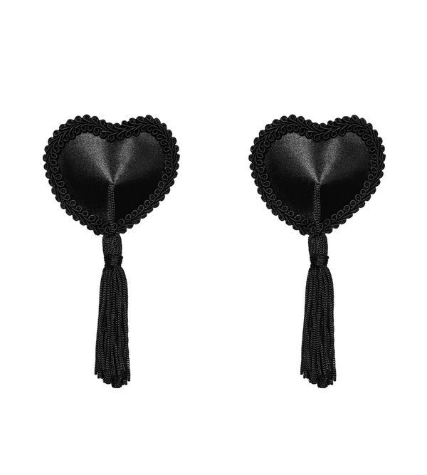 Czarne nasutniki serduszka z frędzelkami Obsessive Tassel