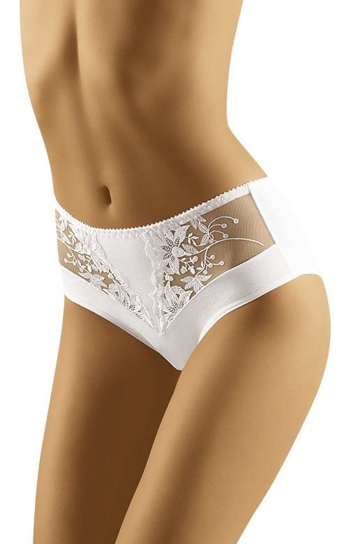 - Bardzo wygodne figi Wolbar Eco La o lekko podwyższonym stanie i klasycznym kroju. Wykonane zostały z ekologicznej bawełny i ozdabia je śliczny haft z motywem kwiatowym oraz siateczka w kolorze materiału. Figi występują w klasycznych kolorach białym i czar
