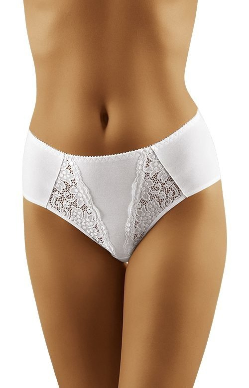 Majtki Wolbar Eco Li charakteryzuje lekko podwyższony stan. Ich dodatkowym atutem są trójkątne wstawki z haftem na przodzie, które optycznie wyszczuplają bardziej wymagające sylwetki. Figi Eco Li występują w klasycznych kolorach białym i czarnym w rozmiarach od M do XXL. Skład materiału: Bawełna (Cotton) - 90%, Elastan (Poliuretan) - 7%, Poliamid - 3%.