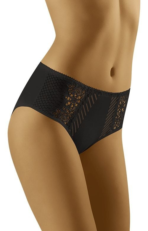 Figi damskie Eco Ri o wysokim stanie wykonane są z bawełny ekologicznej z domieszką elastanu i poliamidu. Z przodu po bokach wszyte wstawki z dzianiny prążkowanej i śliczna koronka. Tył w modelu Eco Ri jest cały gładki. Model dostępny w klasycznych kolorach: białym i czarnym. Skład: Bawełna (Cotton) - 90%, Elastan (Poliuretan) - 7%, Poliamid - 3%.