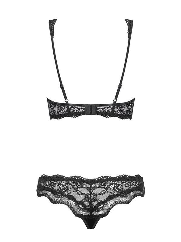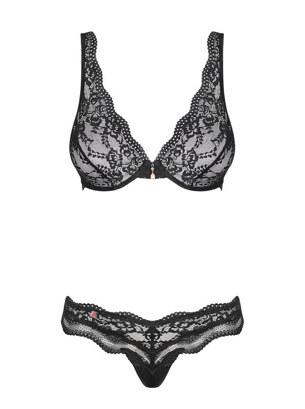Czarny koronkowy komplet damski biustonosz ze stringami Obsessive - Luvae