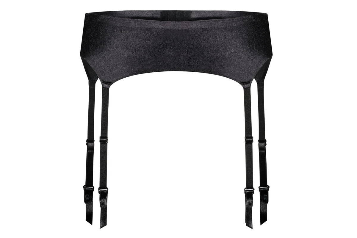 - Gładki czarny pas do pończoch szyty w bezszwowej technologii.