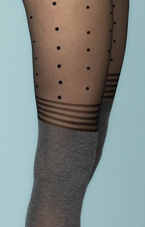 - Rajstopy Fiore Cherish Mee jak zakolanówki z podwiązką .Jeśli szukasz zakolanówek albo podwiązki do zakolanówek ten model będzie idealny. Nic się nie będzie zsuwało z nóg dzięki temu,że to rajstopy imitujące zakolanówki. I te kokieteryjne kropeczki.