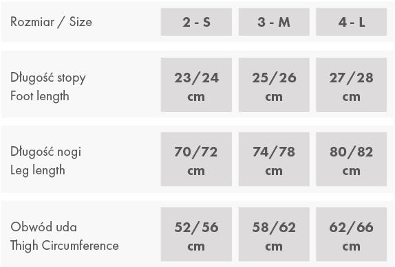 Rozmiar | Długość stopy | Długość nogi | Obwód uda |