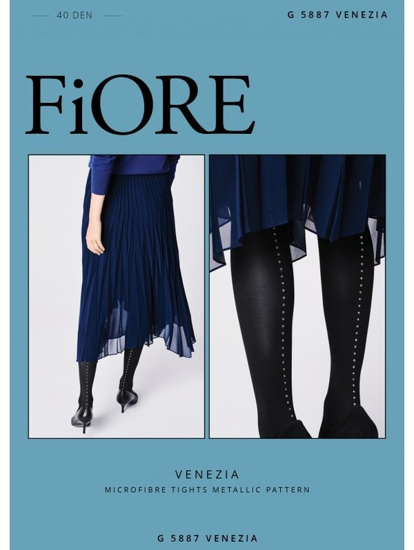 - Czarne rajstopy Fiore VENEZIA. Z tyłu rajstop umieszczono błyszczące kropeczki wzdłuż tylnego szwa. Dzięki takiemu rozwiązaniu nogi są optycznie wydłużone a stylizacja nabiera niebanalnego wyrazu.