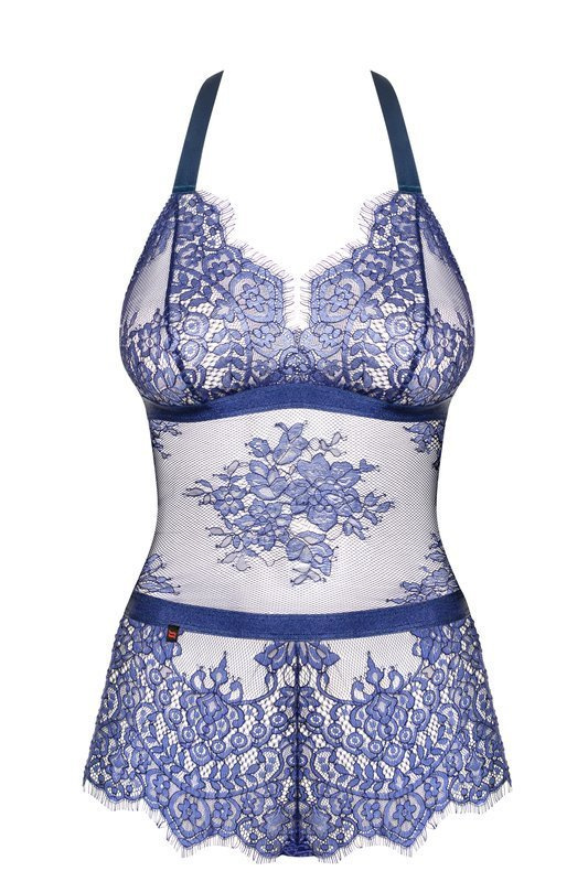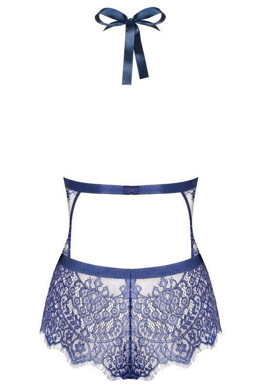 - Efektowne koronkowe body Obsessive Flowlace w niebiańskim kolorze. Bogato zdobiona koronka, dodatki z niebieskiej wstążki, odsłonięte plecy- efekt murowany. Niezwykle atrakcyjne body z koronki, z rozciagliwego materiału pięknie wyglada na ciele.