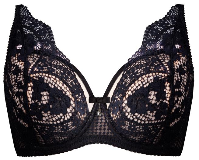 - Miękki czarny biustonosz Unikat ELIF zdobiony śliczną koronką, która przechodzi od miseczek aż na ramiączka dając całości bardzo eleganckiego i kobiecego charakteru.