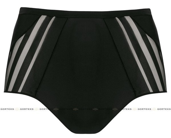 - Wysokie czarne figi Gorteks LUNA/FW. Figi pięknie układają się na sylwetce tuszując jej ewentualne niedoskonałości. Zmysłowo prześwitujące z tyłu.