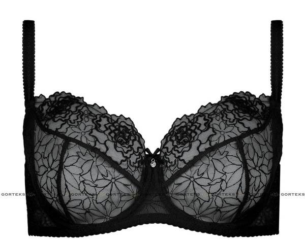 - Gorteks PAMELA/B2 miękki biustonosz czarny. Biustonosz lekko prześwitujący ozdobiony kwiatowym haftem.