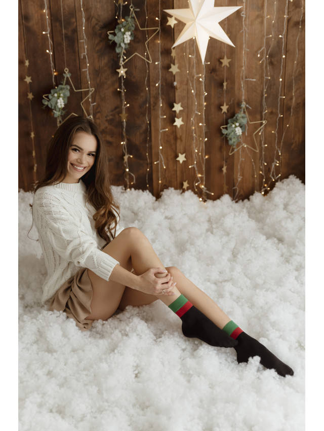 Czarne skarpetki świąteczne z zielono czerwonym ściągaczem Fiore JINGLE