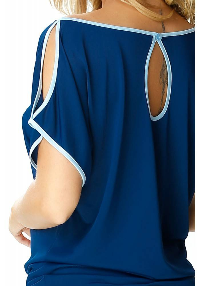 - Krótka jedwabna piżamka damska Mewa 6378 Agata. W komplecie koszulka z krótkim kimonowym rękawem z rozcięciami na ramionach i wycięciem w kształcie łezki na plecach oraz krótkie spodenki z bocznymi wycięciami. Brzegi piżamki obszyte turkusową lamówką.