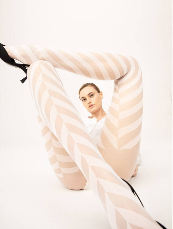Rajstopy białe w ukośne paski Fiore DISTINCT