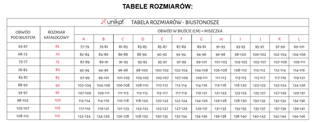 Rozmiar | Obwód pod biustem [cm] | Obwód w biuście [cm] |