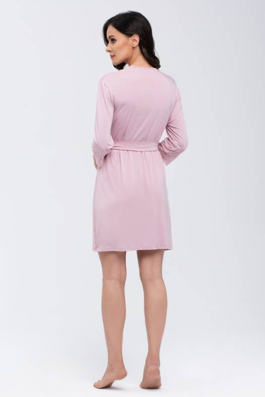 Wiązany różowy szlafrok damski z koronkowym wykończeniem Babella JANE