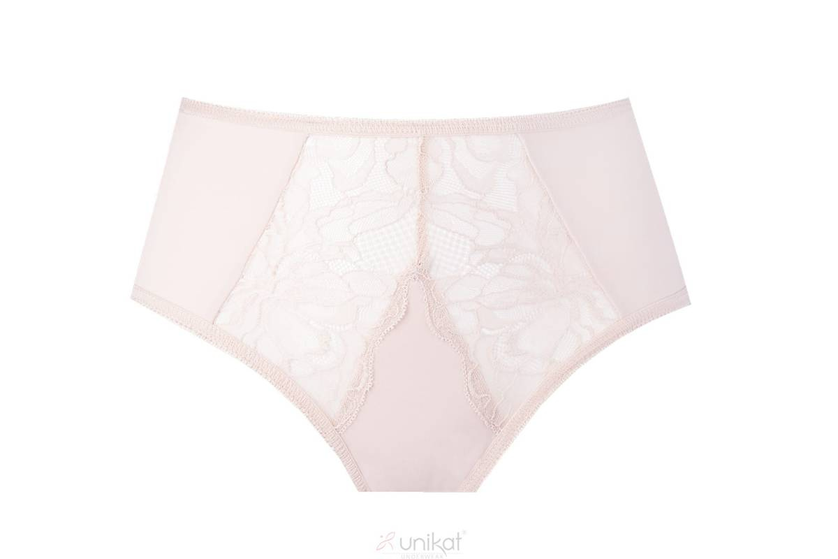 Unikat ANGELIKA - figi w kolorze beżowym zdobione zarówno z przodu jak i z tyłu koronkowymi wstawkami. Figi posiadają lekko podwyższony stan dzięki czemu tuszują drobne mankamenty sylwetki. Skład: 83% POLIAMID, 12% ELASTAN, 5% BAWEŁNA.Odkryj niezrównany komfort i elegancję z figami o lekko podwyższonym stanie Unikat ANGELIKA. Te wyjątkowe majtki damskie w kolorze beżowym to idealna propozycja dla każdej nowoczesnej kobiety, która ceni sobie zarówno styl, jak i wygodę w codziennym użytkowaniu.