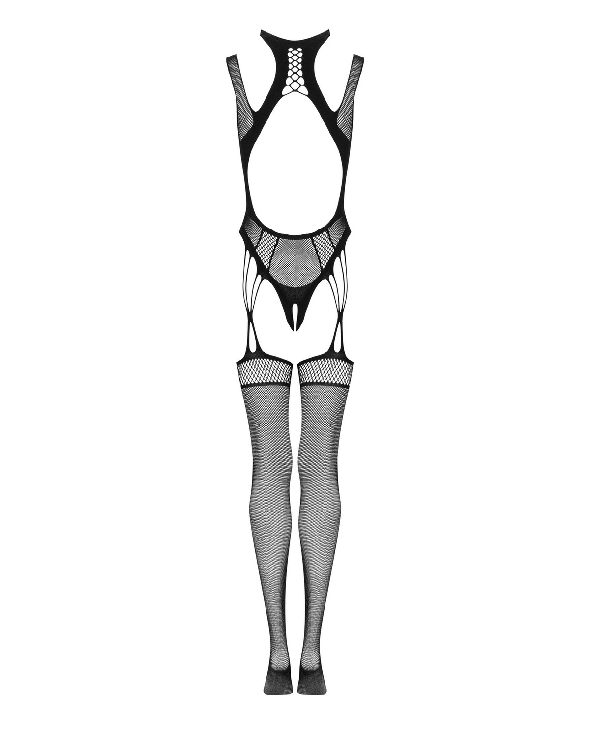 Obsessive G327 - intrygujący bodystocking łączący body z pończochami. Model charakteryzuje: seksowny krój, intrygujące wycięcia, odkryte plecy i otwarty krok. Skład: niezwykle elastyczna i miła w dotyku siateczka (90% poliamid, 10% elastan).Szczegółowe dane