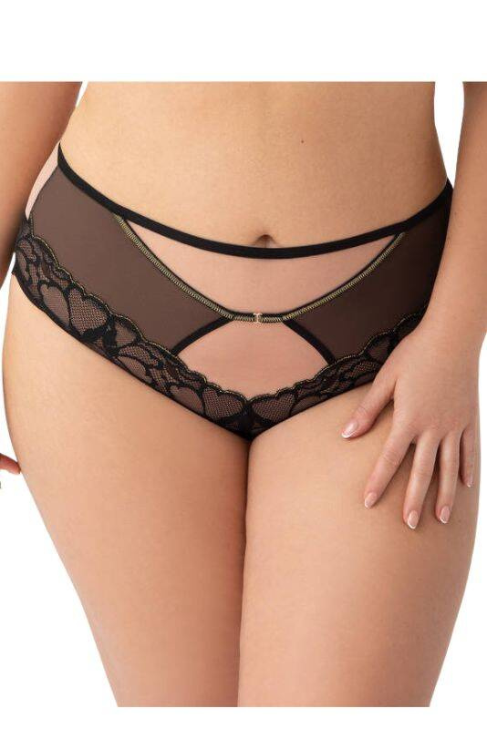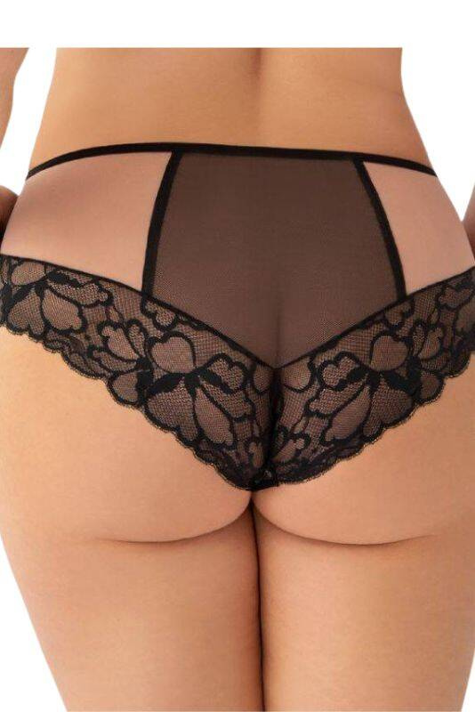 Ten model figi dostępny jest w pięknym czarnym kolorze, który dodaje każdej stylizacji klasy i elegancji. Koronka i hafty aplikowane w subtelny sposób dodają bieliźnie wyjątkowego charakteru, który z pewnością zachwyci każdego. Duże rozmiary produktu sprawiają, że każda kobieta, niezależnie od figury, znajdzie dla siebie idealne dopasowanie, co jest dużym atutem w ofercie marki Gorsenia.