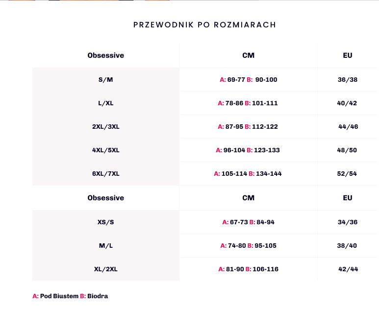 Rozmiar | Talia [cm] | Biodra [cm] | Biust [cm] | Pod biustem [cm] |