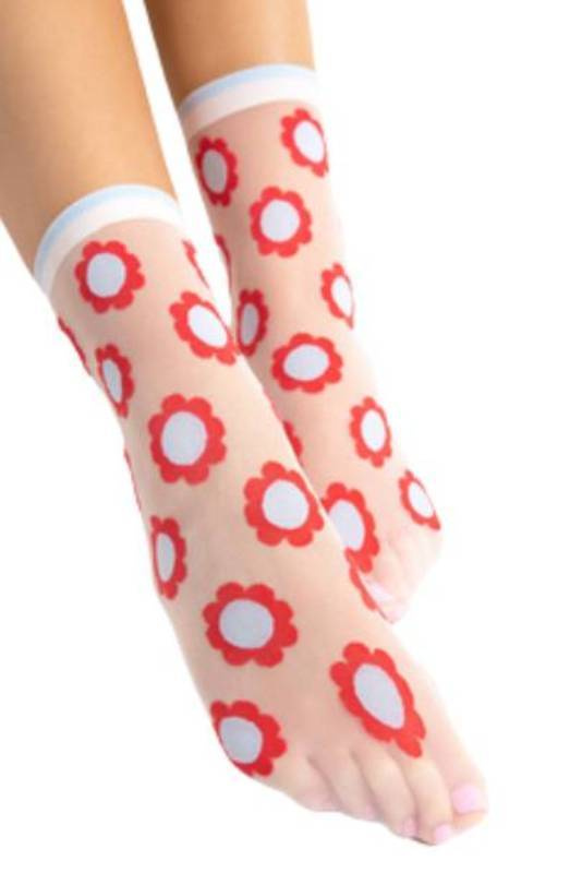 - Rajstopowe skarpetki z lycry, w duże, kontrastowe kwiaty.