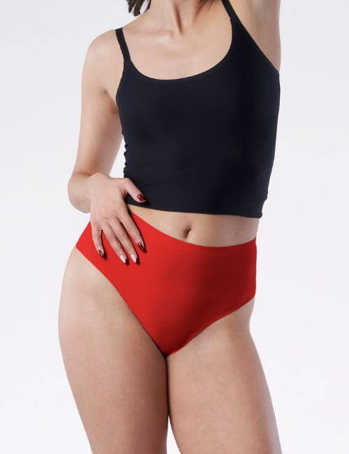 Bezszwowe wysokie czerwone stringi MAXI Julimex, nie odznaczają się pod ubraniem