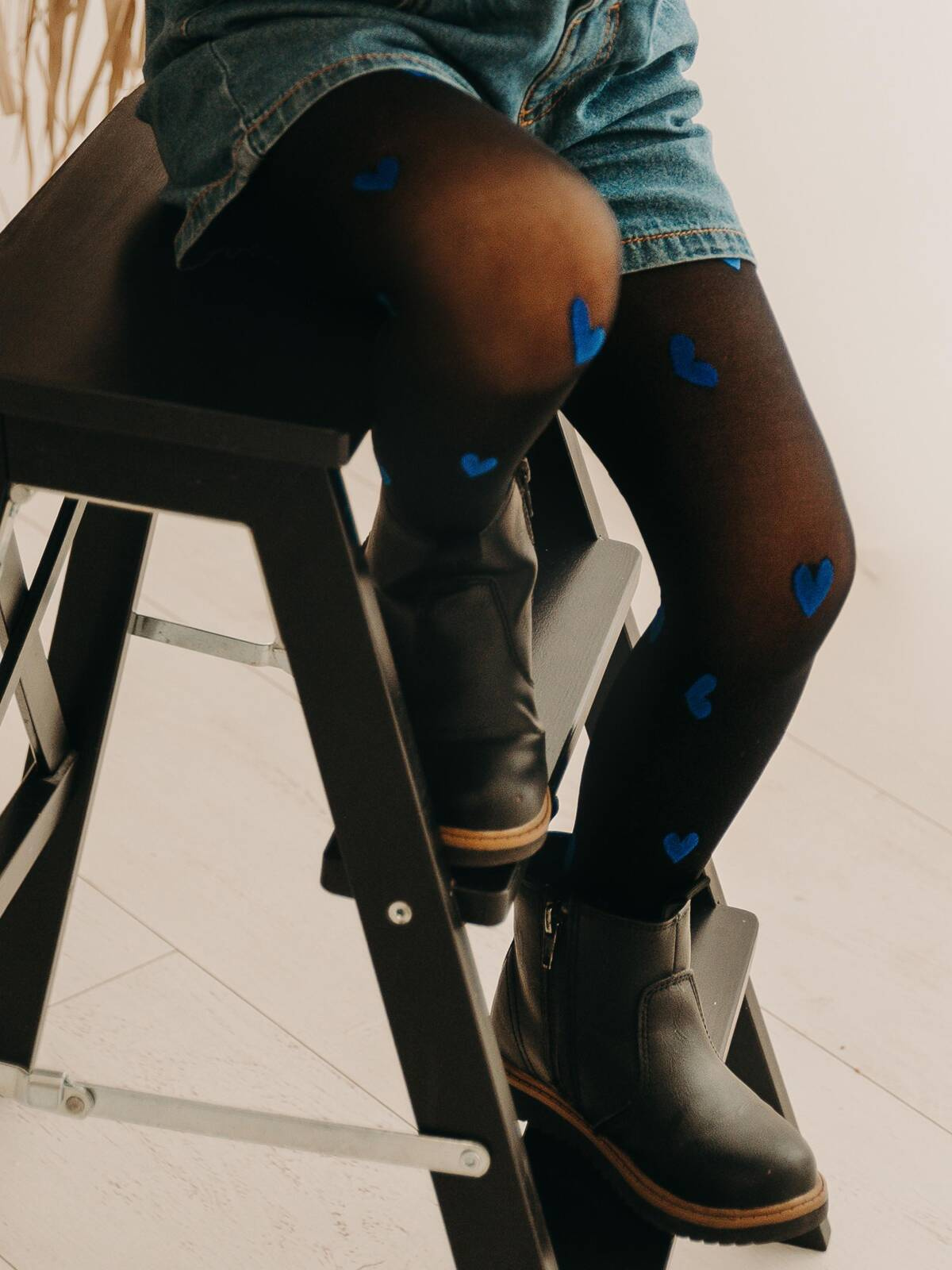- Czarne rajstopki dla dziewczynki, z modnymi serduszkami. Idealne rajstopki na co dzień i od święta..
