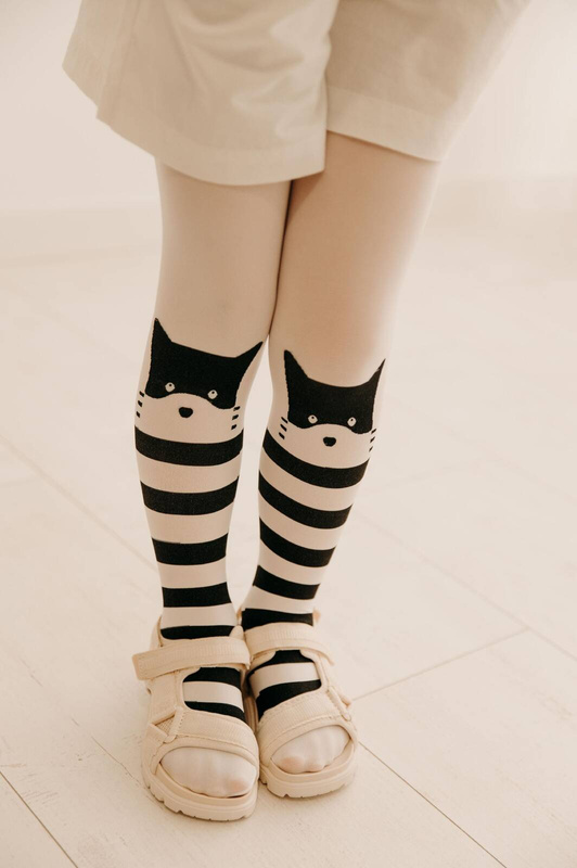 - Rajstopki dla dziewczynki z zabawnym wzorem kotka. Modne i stylowe rajstopki dziewczęce, idealne do wielu stylizacji.