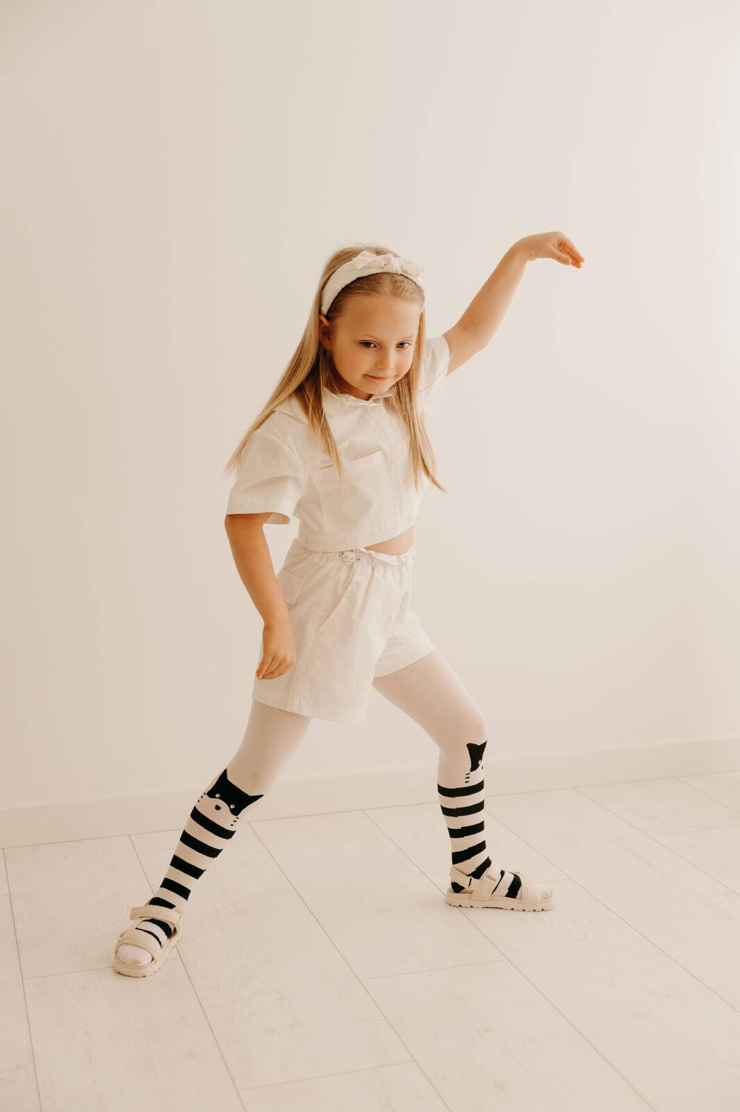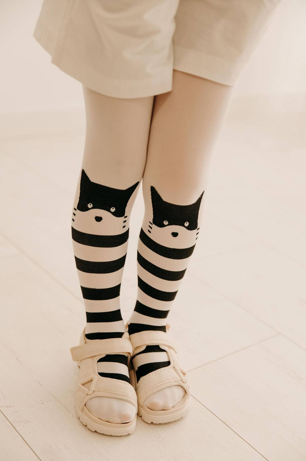Fantazyjne rajstopy dziecięce w bajkowy wzór kocich pyszczków na kolanach z szerokimi, czarno-białymi pasami poniżej. Wzorzyste, cienkie rajstopki dla dziewczynki, o grubości 15 Den, pozwalają na dopasowanie do wielu kreacji na co dzień i do kreacji świątecznych. W połączeniu z sukienką lub spódniczką, te rajstopy są modnym dodatkiem do garderoby każdej młodej damy, z łatwością uzupełniają różnorodne stylizacje. Stworzone z myślą o wygodzie dziecka, pozwalają na nieskrępowany ruch i zabawę. Wzorzyste, elastyczne rajstopki dla dziewczynki, o grubości 40 Den.Rajstopy dziewczęce Fiore CATHY 40 DEN w kolorze białym to idealny wybór dla małych dam, które pragną czuć się komfortowo i stylowo. Wykonane z wysokiej jakości materiałów, te rajstopy zapewniają nie tylko atrakcyjny wygląd, ale także wygodę noszenia przez cały dzień.
