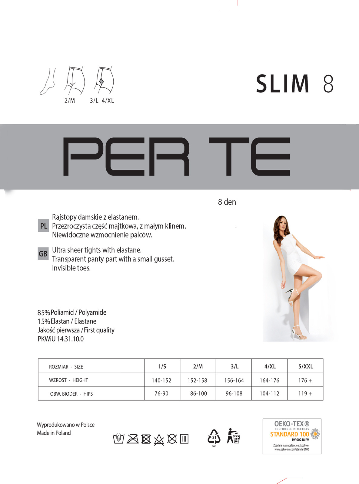 Klasyczne cienkie rajstopy damskie Perte Slim 8 den / ciemny beż