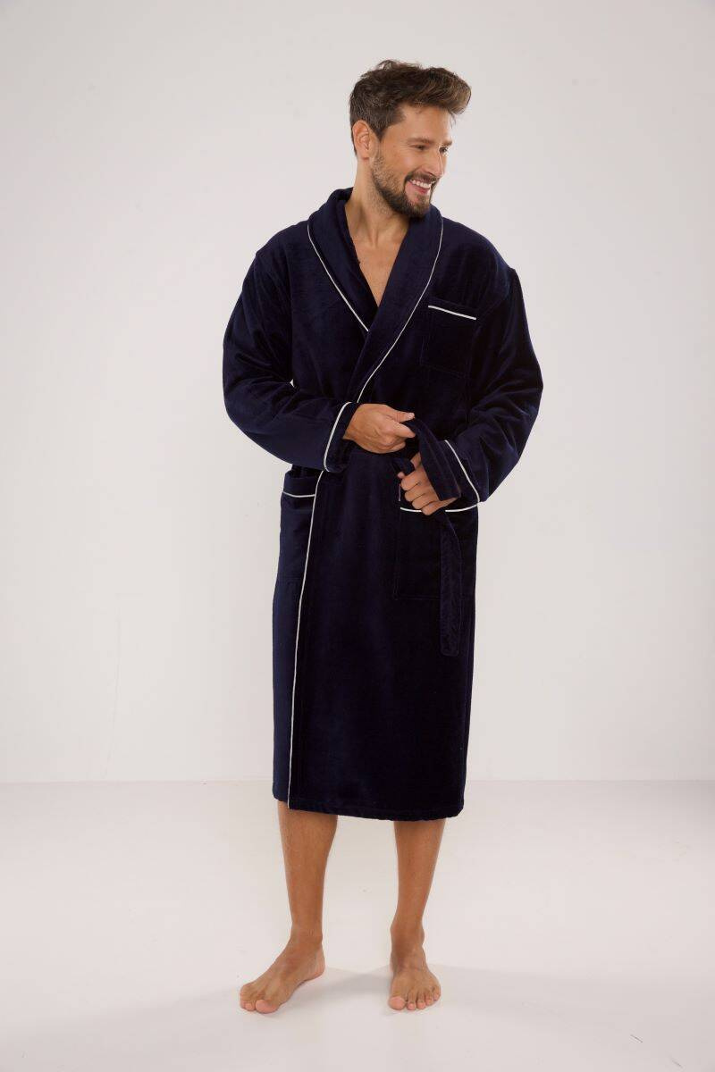 Elegancki granatowy szlafrok męski frotte De Lafense Manuele 735